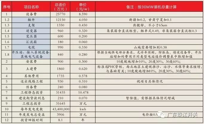 备注:30MW光伏电站投资费用参考